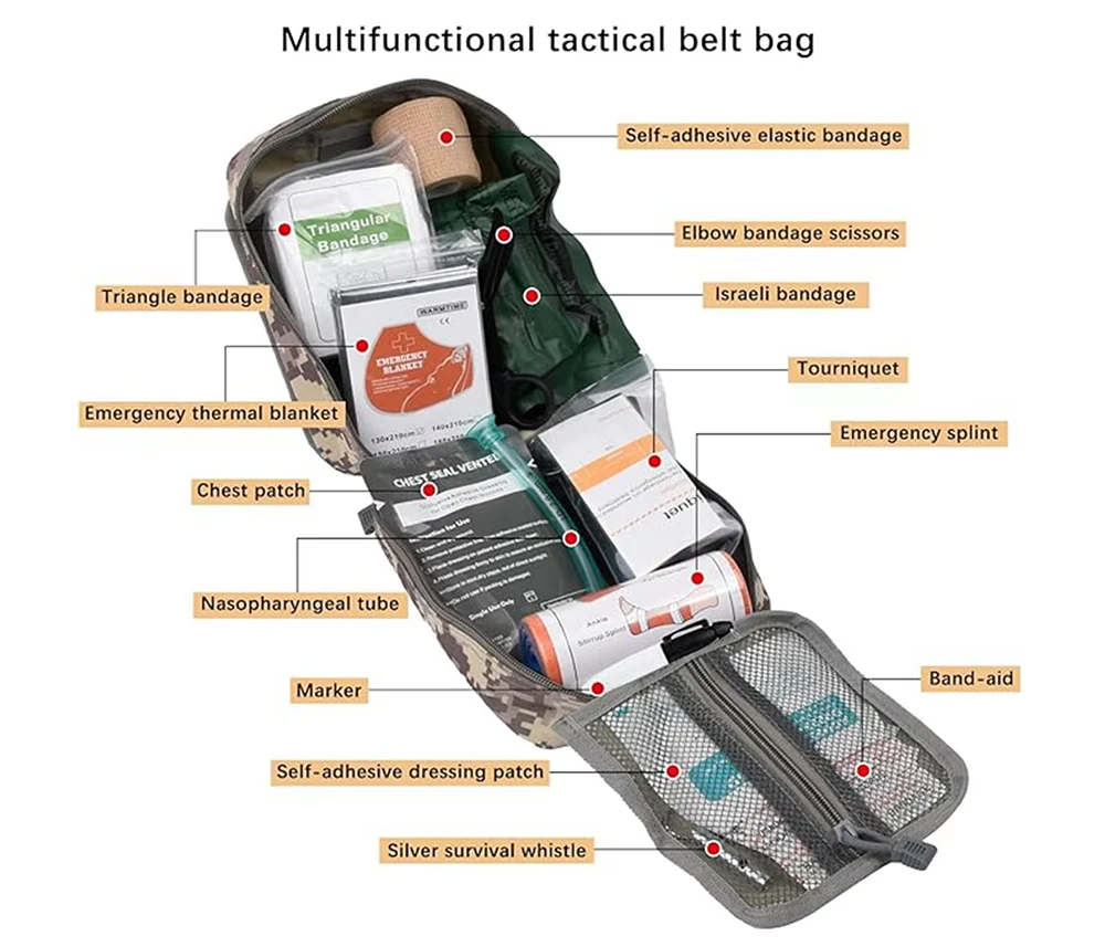 Molle -medicinsk pose til taktisk, overfald, krigsspil, gear last, jagt, skydning, CS, ekspedition, eventyr, wildgame, vildmarksoverlevelse, vandreture, camping, trekking, rejser, klatring, cykling, fiskeri, gymnastiksal, andre sportsgrene.