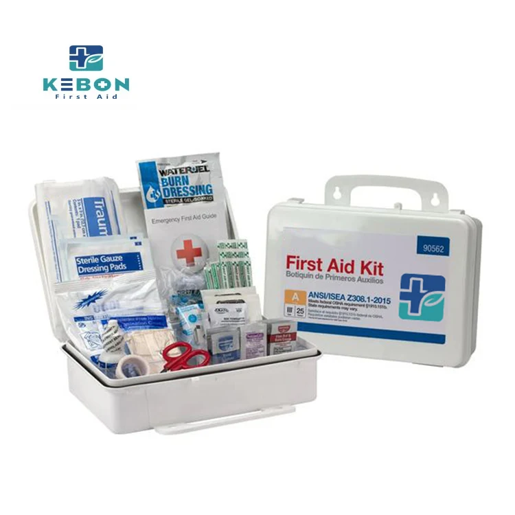 Inkluderer 50+ essentielle genstande såsom klæbende bandager, steril gasbind, antiseptisk klude, CPR -masker og nødtæpper